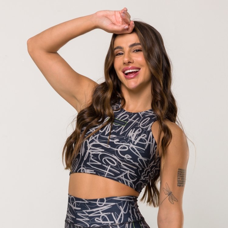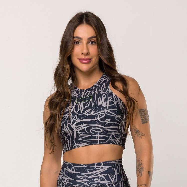 O Top Craquelado Print é uma peça que une estilo e funcionalidade para elevar seu visual durante os treinos. Com uma estampa em preto e detalhes coloridos, este top oferece um toque de arte e modernidade ao seu guarda-roupa fitness. Confeccionada em tecido de alta elasticidade, este top proporciona liberdade de movimento e conforto incomparável, adaptando-se perfeitamente ao seu corpo durante os exercícios.