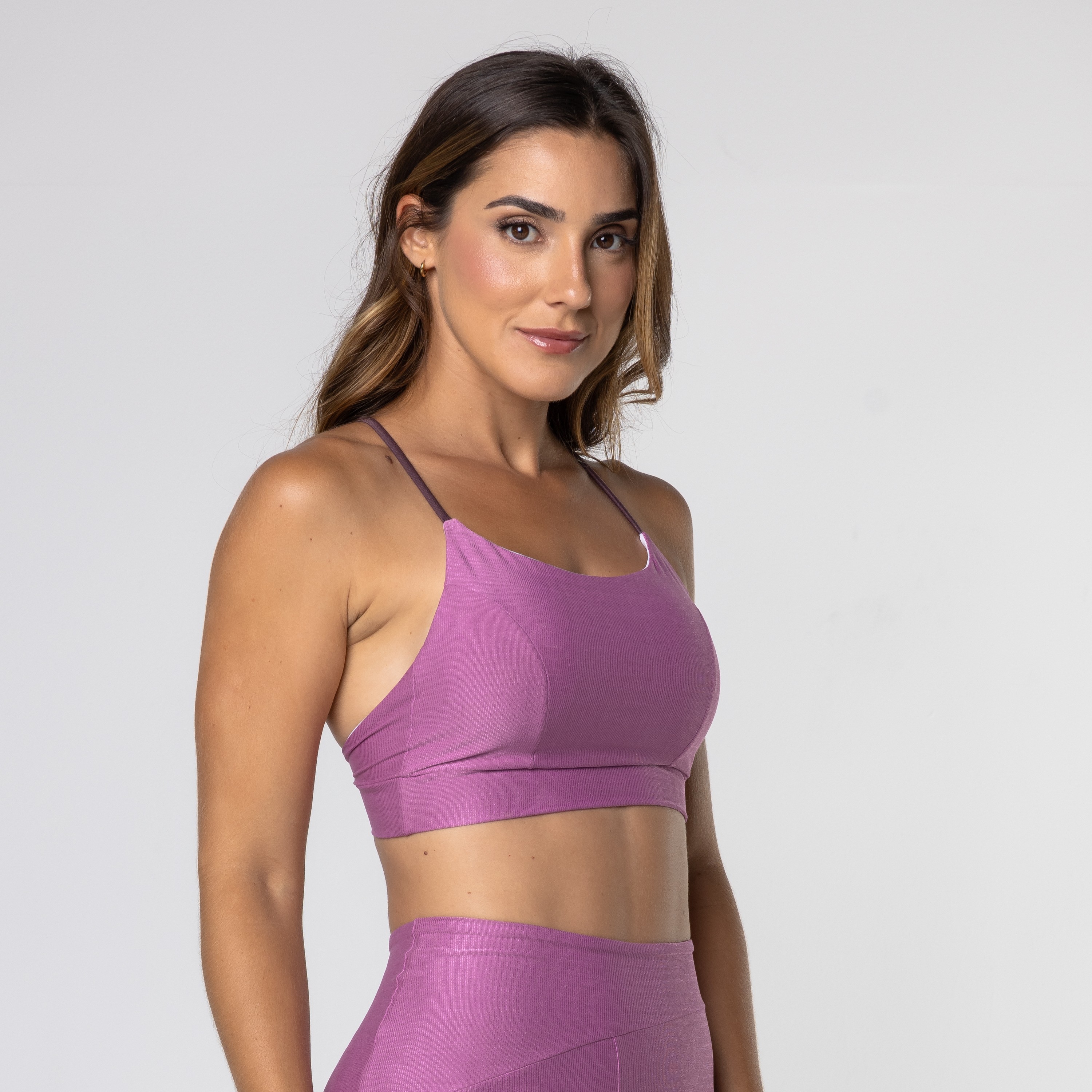O Top Stella é uma peça versátil e que promete dar um up nos seus treinos. Suas alças em V nas costas prometem elevar o nível do mobilidade durante os treinos. Feito com poliamida com base lustrosa.