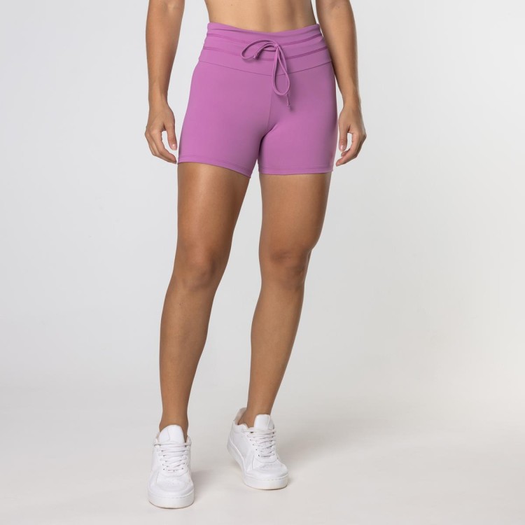 Short fitness com cadarço super-tendência. Seu cós é ligeiramente mais largo e anatômico com um toque extra de compressão na região abdominal devido ao seu duplo pesponto. O comprimento um pouco acima do meio da coxa é perfeito para os dias mais quentes ou treinos mais intensos como Crossfit e HIIT.