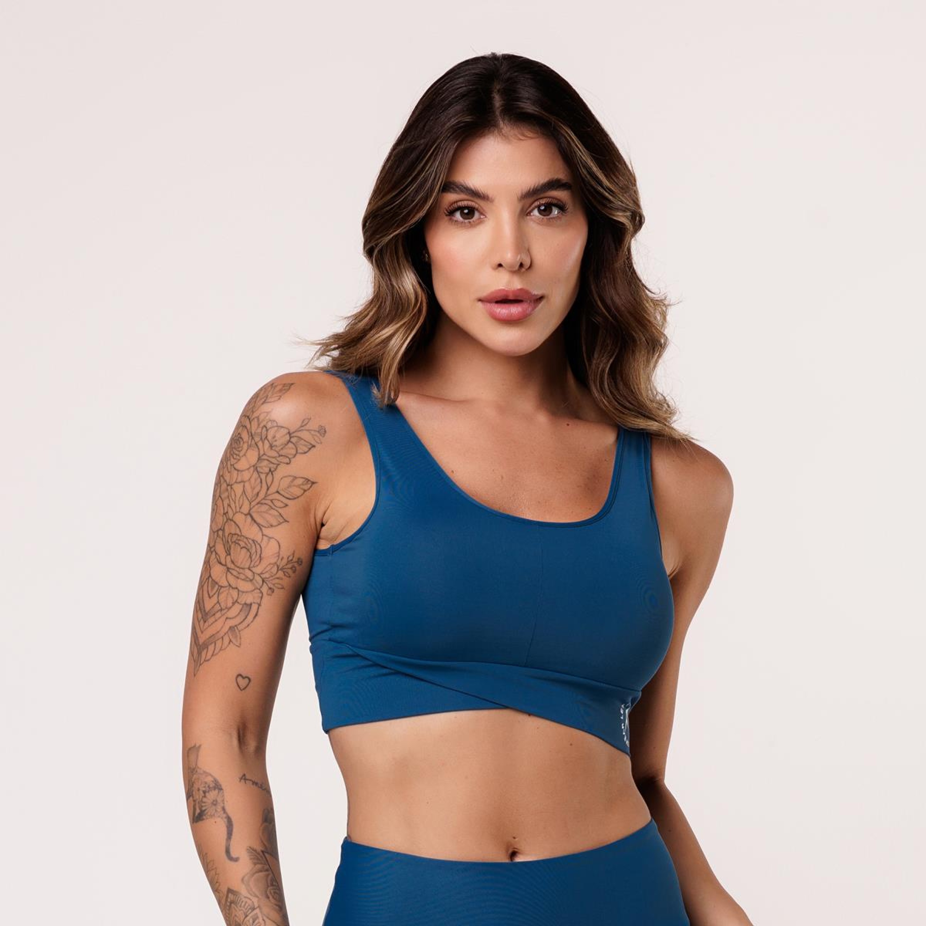 O nosso Top Side combina estilo e funcionalidade para os seus treinos. Feito com tecido poliamida de alta qualidade, oferece conforto e elasticidade para os seus movimentos. Suas alças mais largas proporcionam suporte extra e conforto nos ombros junto a um decote arredondado. As costas mais fechadas oferecem maior cobertura e suporte durante atividades de alta intensidade. O detalhe de cós transpassado acrescenta um elemento de estilo único ao top, tornando-o uma ótima escolha para as suas sessões de treino.