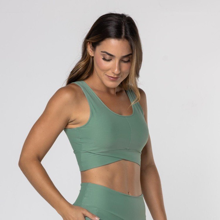 O nosso Top Side combina estilo e funcionalidade para os seus treinos. Feito com tecido poliamida de alta qualidade, oferece conforto e elasticidade para os seus movimentos. Suas alças mais largas proporcionam suporte extra e conforto nos ombros junto a um decote arredondado. As costas mais fechadas oferecem maior cobertura e suporte durante atividades de alta intensidade. O detalhe de cós transpassado acrescenta um elemento de estilo único ao top, tornando-o uma ótima escolha para as suas sessões de treino.