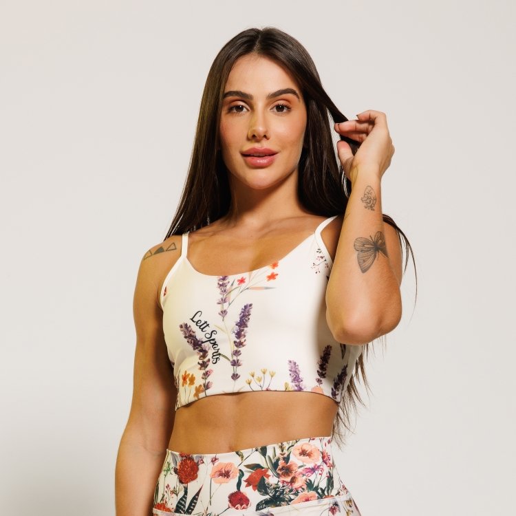 O Top Botanical Print traz uma estampa alegre desenvolvida para deixar seus looks de treinos com um toque a mais de estiloso e sofisticação. Com alças finas e uma modelagem que envolve o corpo durante o seu uso.