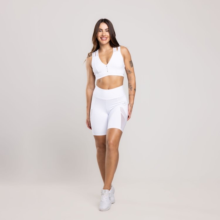 A Bermuda one é a peça que falta no seu guarda-roupa, para dar aquele UP nos seus exercícios. Feita com tecido Maxxi que é conhecido por sua qualidade, ela oferece uma sensação suave e agradável ao toque. Ela oferece suporte e liberdade de movimento, permitindo que você se mova com confiança e conforto. Os detalhes em tule e mesh trazem um toque de charme e modernidade à bermuda. Além disso, o cós alto e duplo proporciona um ajuste seguro e confortável durante todas as atividades.